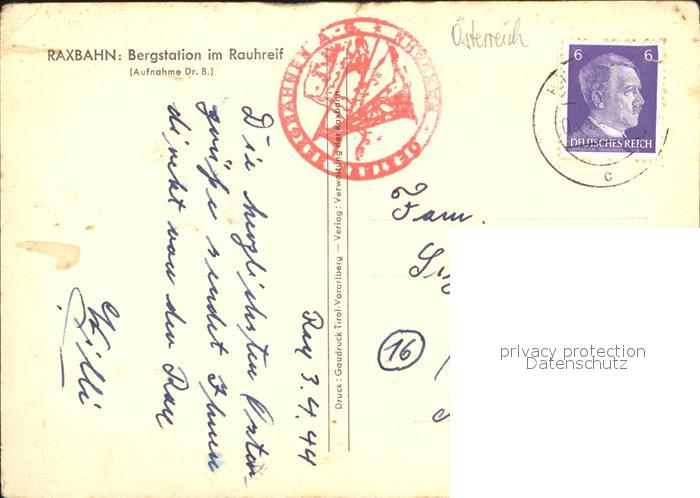 11931808 alte Postkarte Hirschwang Rax Raxbahn Bergstation im Rauhreif postalisch gelaufen Erhaltung siehe scans KatCode: 11390122031829