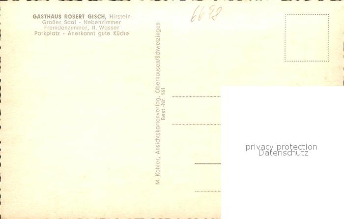 31714595 Hirstein Gasthaus Gisch postalisch nicht gelaufen Erhaltung siehe scans KatCode: 11110010046113