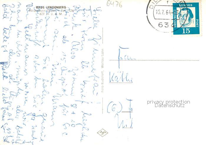 73864960 alte Postkarte Hirzenhain Eschenburg Haus Lengenberg Gaststube postalisch gelaufen Erhaltung siehe scans [WerneD78] KatCode: 11110006532009