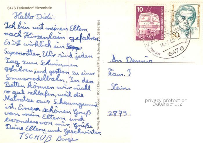 73065275 alte Postkarte Hirzenhain Wetteraukreis Feriendorf postalisch gelaufen Erhaltung siehe scans [FriedD77] KatCode: 11110006440011