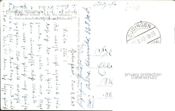 31717262 alte Postkarte Hirzenhain Wetteraukreis Strandbad Hillersbach postalisch gelaufen Feldpost Erhaltung siehe scans KatCode: 11110006440011