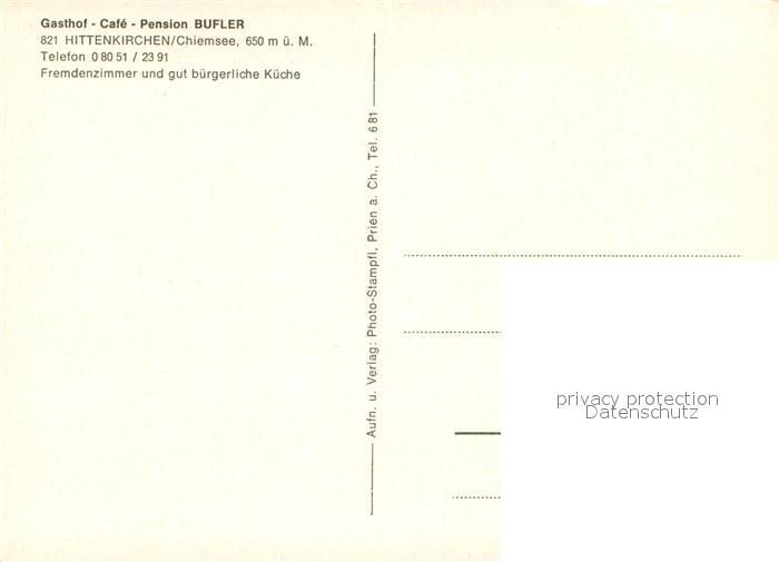 73654267 Hittenkirchen Chiemsee Gasthof Pension Bufler Kirche Panorama Gastraum postalisch nicht gelaufen Erhaltung siehe scans [WerneD78] KatCode: 11110009187118