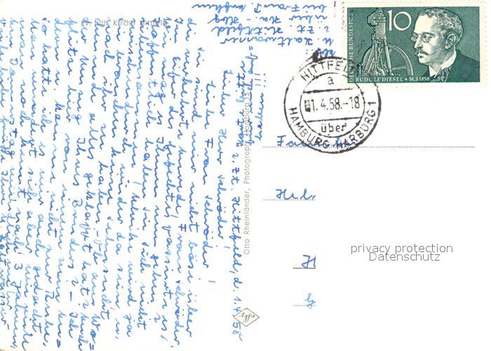73037299 alte Postkarte Hittfeld Evangelische Kirche postalisch gelaufen Erhaltung siehe scans [KathaD81] KatCode: 11110003353031