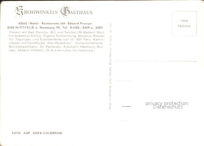 72370024 Hittfeld Frohwinkels Gasthaus postalisch nicht gelaufen Erhaltung siehe scans KatCode: 11110003353031