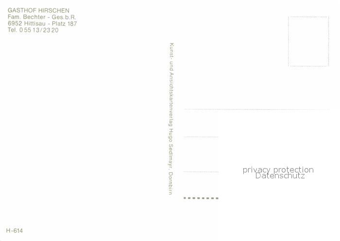 72760507 Hittisau Vorarlberg Gasthaus Hirschen postalisch nicht gelaufen Erhaltung siehe scans [LiesaD40] KatCode: 11390341080216