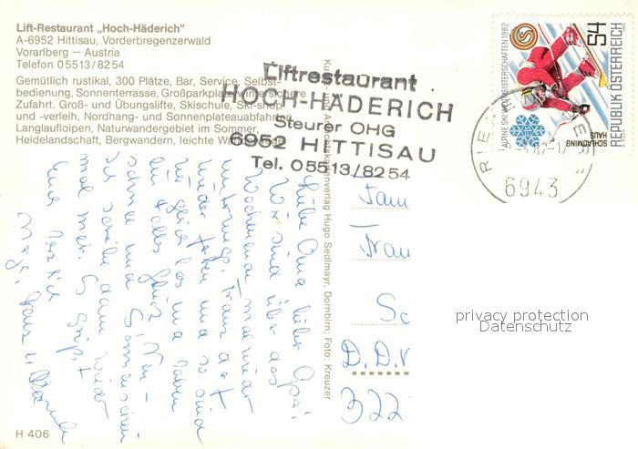 73171643 alte Postkarte Hittisau Vorarlberg Lift-Restaurant Hoch-Haederich postalisch gelaufen Erhaltung siehe scans [NatalD47] KatCode: 11390341080216