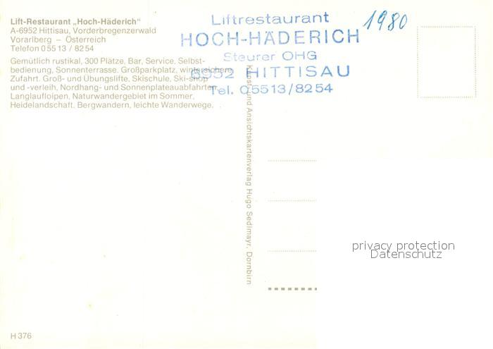 73266460 Hittisau Vorarlberg Lift-Restaurant Hoch Haederich postalisch nicht gelaufen Erhaltung siehe scans [LiesaD40] KatCode: 11390341080216
