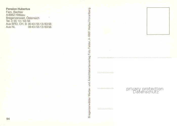 12870034 Hittisau Vorarlberg Pension Hubertus postalisch nicht gelaufen Erhaltung siehe scans [PaolaD17] KatCode: 11390341080216