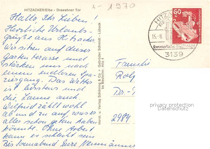 73054571 alte Postkarte Hitzacker Elbe Drawehner Tor postalisch gelaufen Erhaltung siehe scans [KathaD81] KatCode: 11110003354009