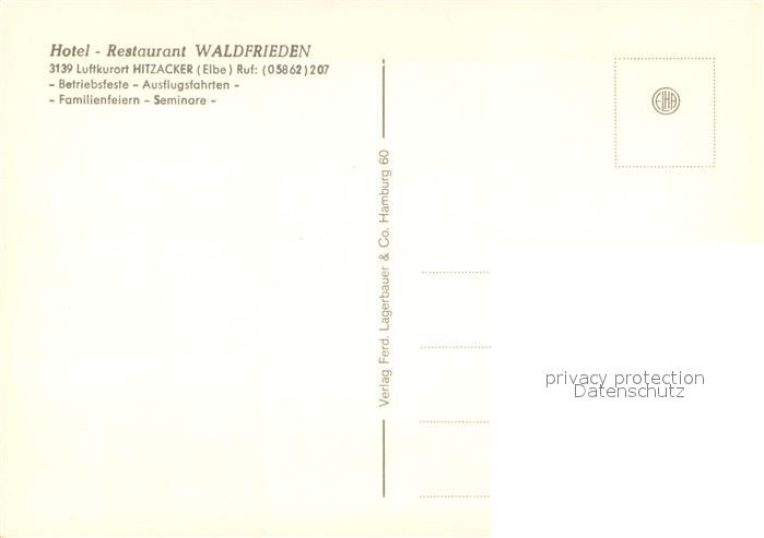 73619901 Hitzacker Elbe Hotel Restaurant Waldfrieden Gaestehaus Kellerbar Kurhaus Saal Kegelbahn postalisch nicht gelaufen Erhaltung siehe scans [WerneD78] KatCode: 11110003354009