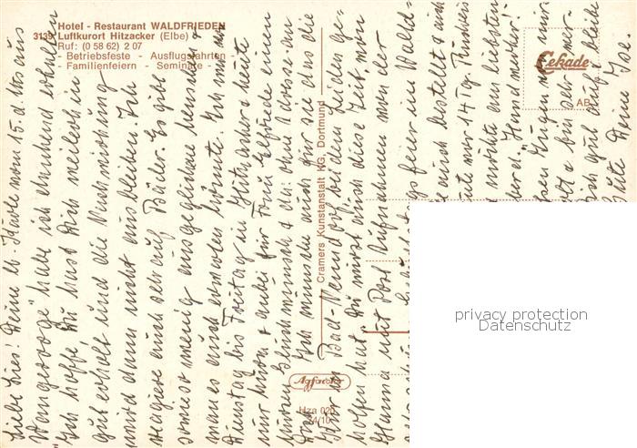 73813701 Hitzacker Elbe Hotel Waldfrieden Gaestehaus Kellerbar Elbrundfahrten Kurpark Bundeskegelbahn postalisch nicht gelaufen Erhaltung siehe scans [WerneD78] KatCode: 11110003354009