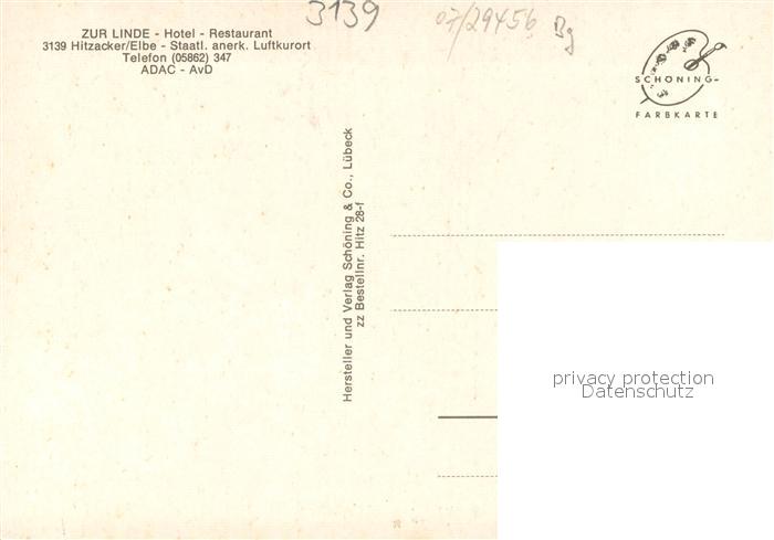 73690725 Hitzacker Elbe Hotel Zur Linde Restaurant postalisch nicht gelaufen Erhaltung siehe scans [WerneD78] KatCode: 11110003354009