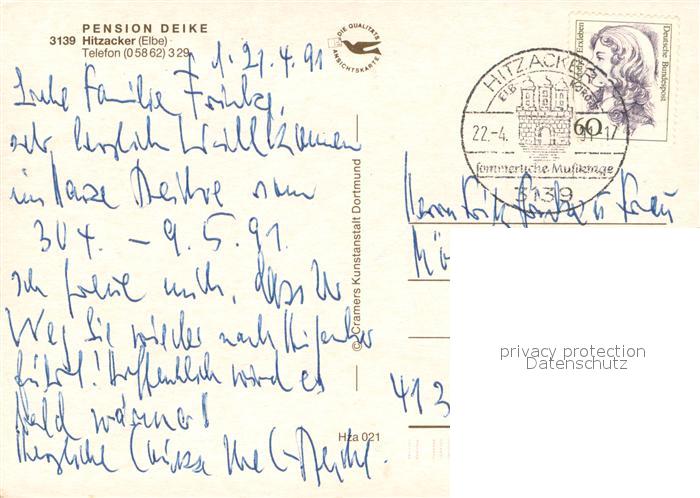 73711914 alte Postkarte Hitzacker Elbe Pension Deike Aussenansicht postalisch gelaufen Erhaltung siehe scans [LiesaD40] KatCode: 11110003354009