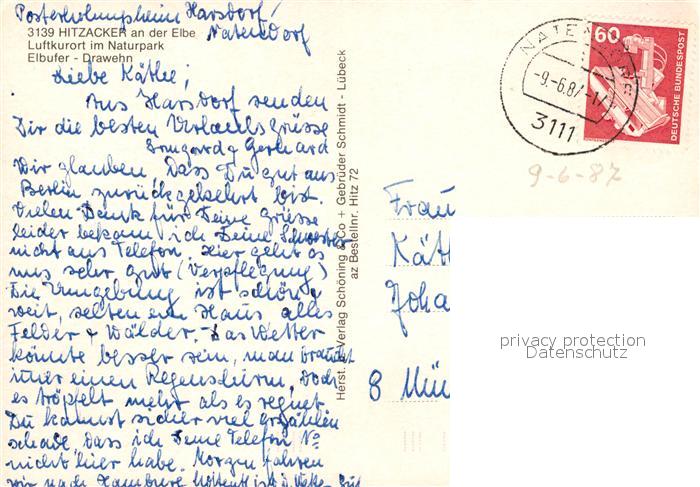73152549 alte Postkarte Hitzacker Elbe Teilansichten Luftkurort im Naturpark Elbufer Drawehn Fachwerkhaeuser postalisch gelaufen Erhaltung siehe scans [FriedD77] KatCode: 11110003354009