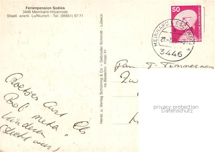 72987947 alte Postkarte Hitzelrode Ferienpension Sodies Panorama Luftkurort Segeln postalisch gelaufen Erhaltung siehe scans [FriedD77] KatCode: 11110006636007