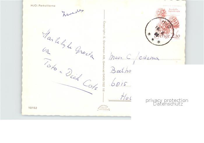 old postcard Hjo Parkvillorna postalisch gelaufen Erhaltung siehe scans