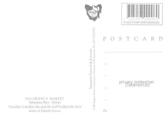 Hobart Tasmania Salamanca Market postalisch nicht gelaufen Erhaltung siehe scans [FriedD77]