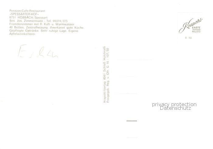 73854501 Hobbach Fliegeraufnahme mit Pension Cafe Restaurant Spessarter Hof postalisch nicht gelaufen Erhaltung siehe scans [WerneD78] KatCode: 11110009676123