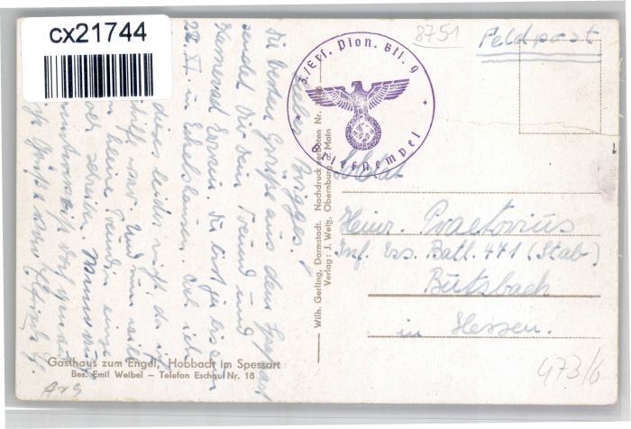 30739809 Hobbach Gasthaus Engel postalisch nicht gelaufen KatCode: 11110009676123