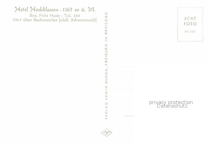 72813639 Hochblauen Berghotel mit Blick zu den Schweizer Alpen postalisch nicht gelaufen Erhaltung siehe scans [FriedD77] KatCode: 11110008315007