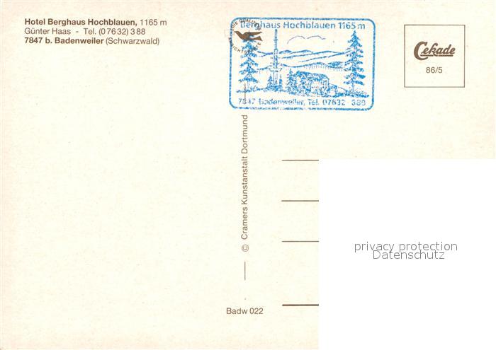 72961731 Hochblauen Hotel Berghaus Guenter Haas postalisch nicht gelaufen Erhaltung siehe scans [LiesaD40] KatCode: 11110008315007