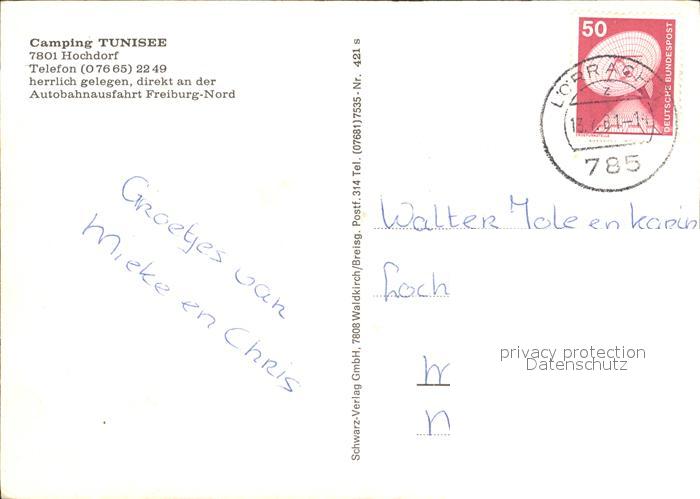 72410626 alte Postkarte Hochdorf Breisgau Camping Tunisee postalisch gelaufen Erhaltung siehe scans KatCode: 11110008311000