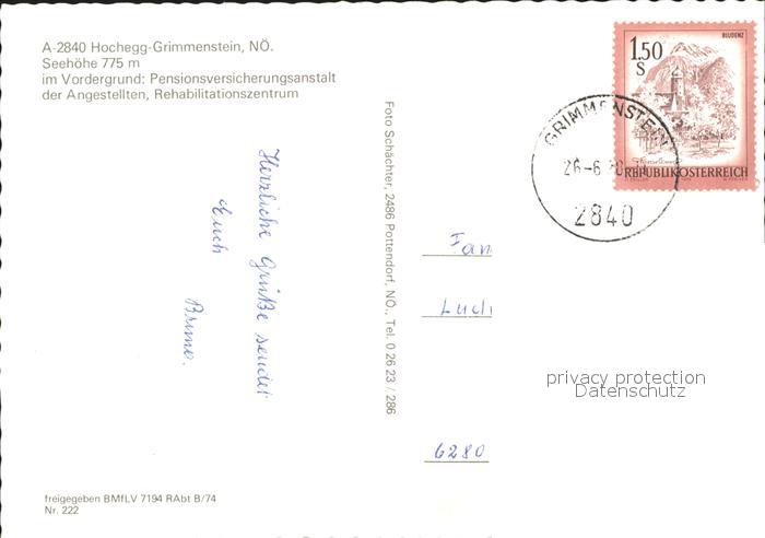 71872043 alte Postkarte Hochegg Grimmenstein Pensionsversicherungsanstalt Angestellten Rehabilitationszentrum Fliegeraufnahme postalisch gelaufen Erhaltung siehe scans KatCode: 11390122031812