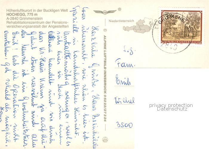 73082895 alte Postkarte Hochegg Hoehenluftkurort in der Buckligen Welt Fliegeraufnahme postalisch gelaufen Erhaltung siehe scans [FriedD77] KatCode: 11390122031812