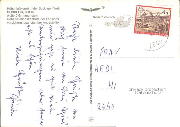 72496457 alte Postkarte Hochegg PV Ang Rehazentrum Fliegeraufnahme postalisch gelaufen Erhaltung siehe scans KatCode: 11390122031812