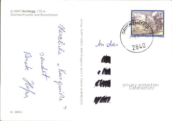 72478801 alte Postkarte Hochegg REHA Zentrum postalisch gelaufen Erhaltung siehe scans KatCode: 11390122031812
