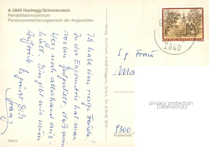 73168785 alte Postkarte Hochegg REHA Zentrum postalisch gelaufen Erhaltung siehe scans [KathaD81] KatCode: 11390122031812
