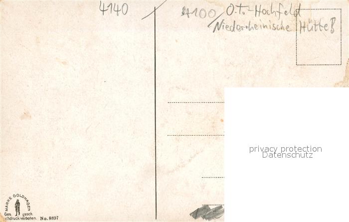 73701915 Hochfeld Duisburg Niederrheinische Huette Anlegestelle postalisch nicht gelaufen Erhaltung siehe scans [LiesaD40] KatCode: 11110005112000