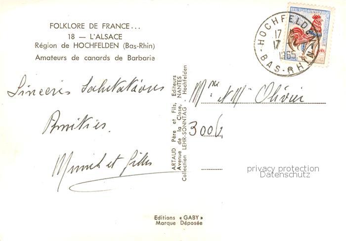 13826057 Hochfelden Bas-Rhin Folklore de France Amateurs de canards de Barbarie postalisch gelaufen Erhaltung siehe scans [FriedD77] carte postale Frie Katcode 11170067667202
