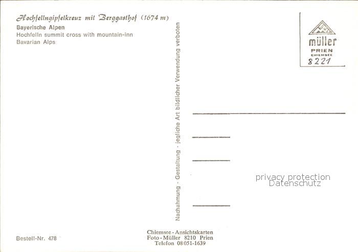 72462850 Hochfellnhaus Berggasthof Gipfelkreuz postalisch nicht gelaufen Erhaltung siehe scans KatCode: 11110009189113