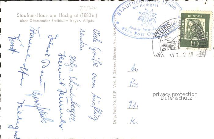 41635037 alte Postkarte Hochgrat Staufner-Haus postalisch gelaufen Erhaltung siehe scans KatCode: 11110009780132