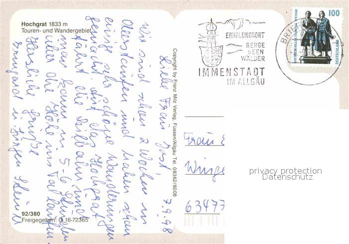 72832016 alte Postkarte Hochgrat Touren und Wanderparadies Allgaeuer Alpen Fliegeraufnahme postalisch gelaufen Erhaltung siehe scans [FriedD77] KatCode: 11110009780132