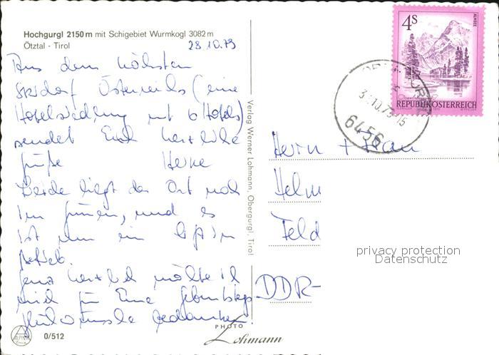 72498261 alte Postkarte Hochgurgl Wurmkogl Ski Sessellift postalisch gelaufen Erhaltung siehe scans KatCode: 11390