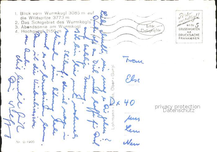 72376757 alte Postkarte Hochgurgl Wurmkogl Wildspitze postalisch gelaufen Erhaltung siehe scans KatCode: 11390
