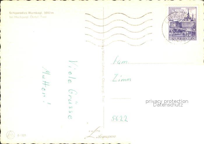72544128 alte Postkarte Hochgurgl Wurmkogl postalisch gelaufen Erhaltung siehe scans [PaolaD17 kt115box] KatCode: 11390