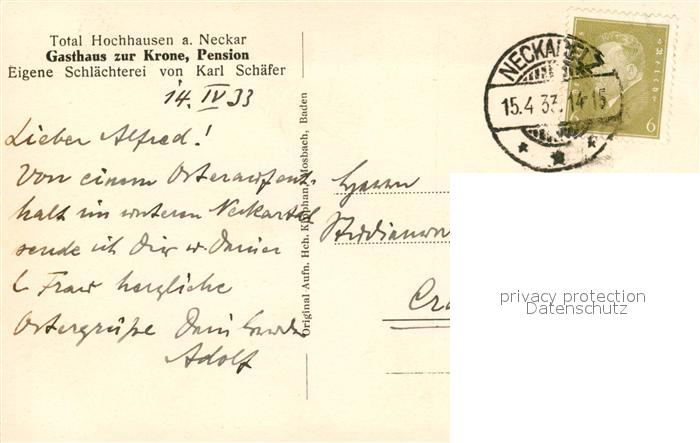 33278547 alte Postkarte Hochhausen Neckar Gasthaus zur Krone postalisch gelaufen Erhaltung siehe scans [NatalD47] KatCode: 11110008225033