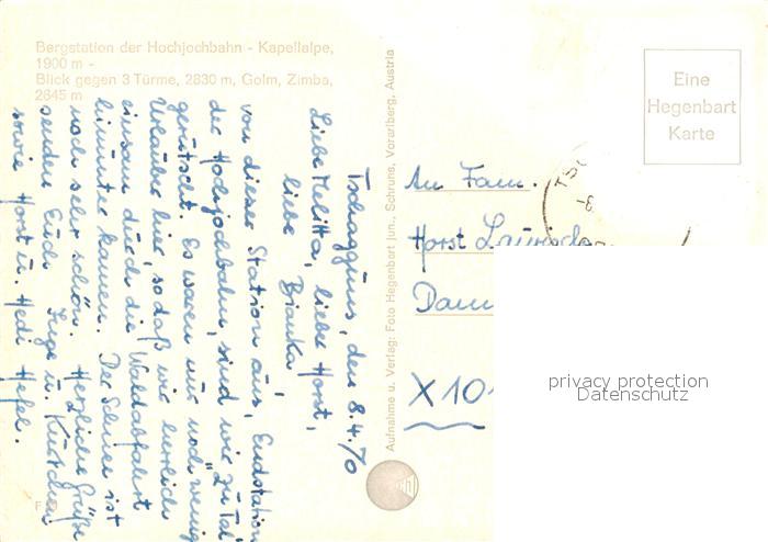 73598718 alte Postkarte Hochjoch Bergstation Hochjochbahn Kapellalpe Golm Zimba postalisch gelaufen Erhaltung siehe scans [PaolaD17] KatCode: 11390342080207