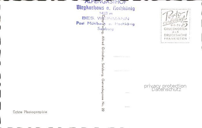 71921211 Hochkoenig Alpengasthofn Birgkarhaus Taghaube postalisch nicht gelaufen Erhaltung siehe scans KatCode: 11390322050415