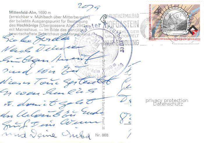 72653563 alte Postkarte Hochkoenig Mitterfeld Alm postalisch gelaufen Erhaltung siehe scans [WerneD78] KatCode: 11390322050415