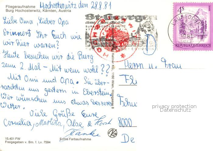 73166518 alte Postkarte Hochosterwitz Burg Fliegeraufnahme postalisch gelaufen Erhaltung siehe scans [FriedD77] KatCode: 11390213020523