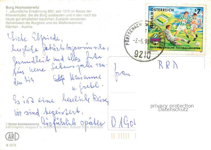 74020977 alte Postkarte HOCHOSTERWITZ Burg Kaernten AT Fliegeraufnahme postalisch gelaufen Erhaltung siehe scans [FriedD77] KatCode: 11390213020523
