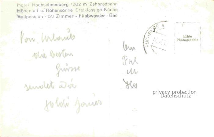 74107853 Hochschneeberg 2061m Niederoesterreich AT Hotel Hochschneeberg mit Zahnradbahn postalisch gelaufen Erhaltung siehe scans [WerneD78] alte Postkarte Wern Katcode 11390122031826