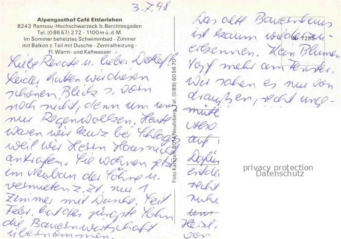 74093825 Hochschwarzeck RAMSAU Berchtesgaden Bayern Alpengasthof Cafe Ettlerlehen postalisch nicht gelaufen Erhaltung siehe scans [WerneD78] KatCode: 11110009172129