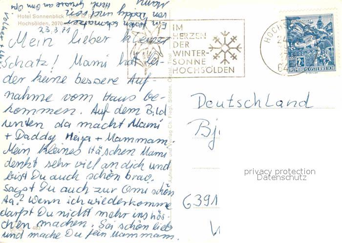72795382 alte Postkarte Hochsoelden Hotel Sonnenblick Sesselbahn postalisch gelaufen Erhaltung siehe scans [NatalD47] KatCode: 11390334070220