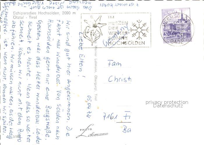 72308359 alte Postkarte Hochsoelden oetztal Teilansicht postalisch gelaufen Erhaltung siehe scans KatCode: 11390334070220