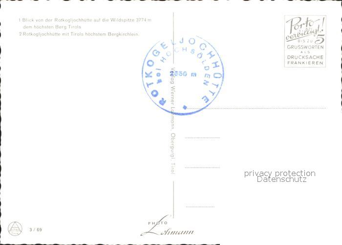 71963107 Hochsoelden Rotkogljochhuette postalisch nicht gelaufen KatCode: 11390334070220